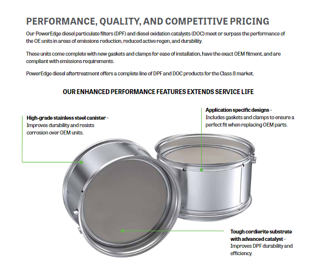 - PowerEdge DOC's are made with fully coated OEM grade substrates for high-efficiency heat transfer. Substrates are placed in stainless steel cannisters for corrosion protection. All part numbers come with clamps and gaskets.