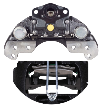 • Pad retainer "tuning fork" type with 17mm hex-head bolt